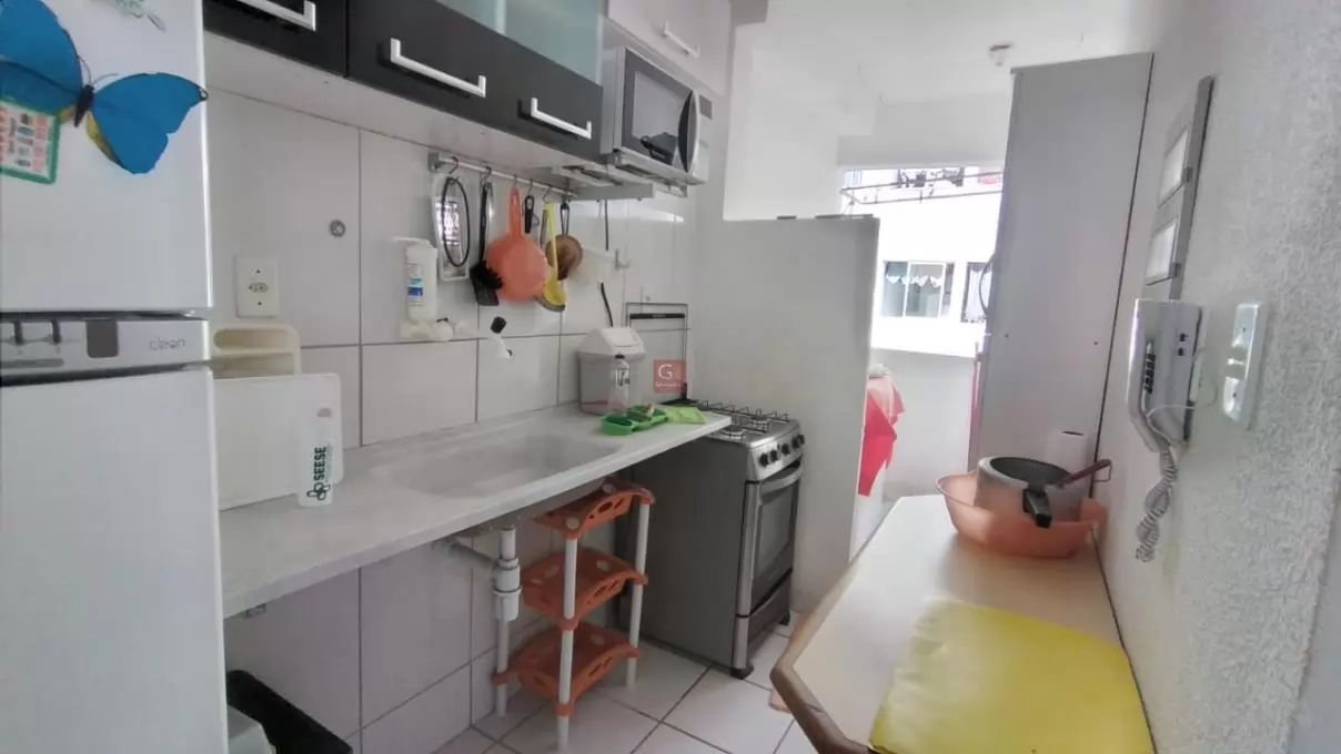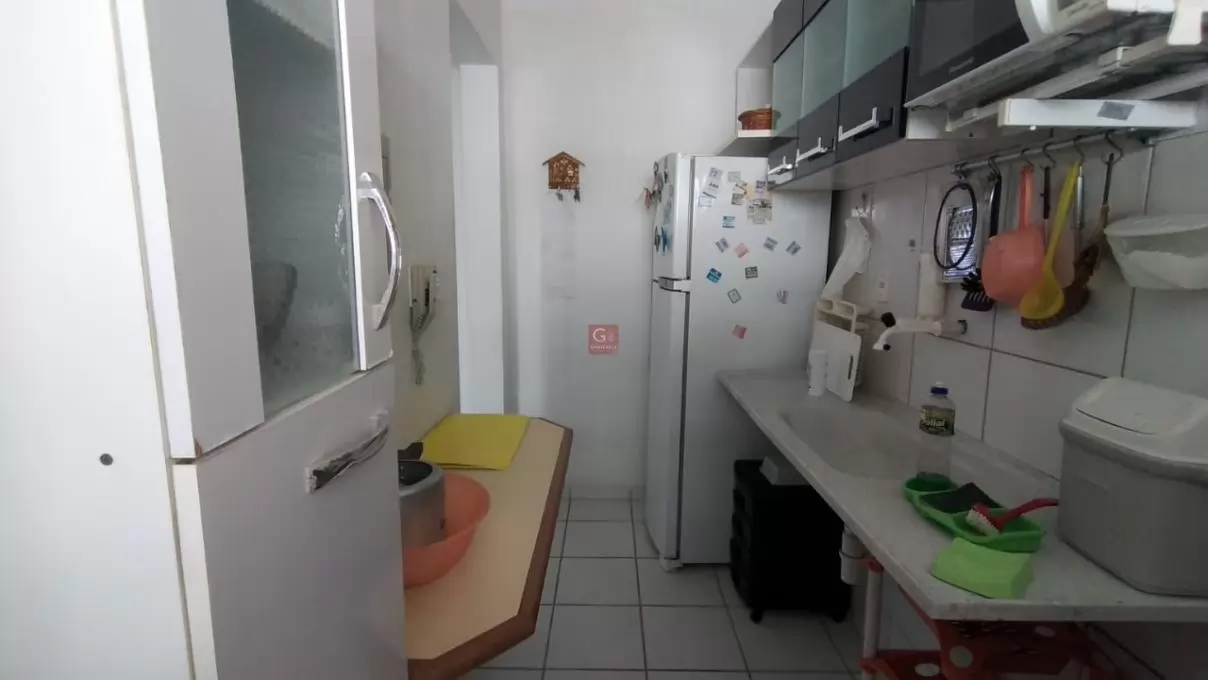 Apartamento com três (03) quartos, um banheiro social, sala, cozinha, área de serviço, uma (01) vaga de garagem coberta, com mobília e eletrodomésticos.